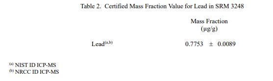 NIST 認(rèn)證值是 NIST 對其準(zhǔn)確性有最高置信度的值,因為所有已知或可疑的偏差來源都已調(diào)查或考慮在內(nèi) [1]。表 1 和表 2 中提供了選定類黃酮、萜內(nèi)酯和鉛的認(rèn)證濃度值。這些值來自 NIST 和合作實驗室提供的結(jié)果的組合。該材料中的認(rèn)證值是各組 NIST 結(jié)果的同等加權(quán)平均值和合作實驗室進(jìn)行的組合測量值的平均值;相關(guān)的不確定性是 95% 置信水平的擴(kuò)展不確定性 [2,3]。以質(zhì)量分?jǐn)?shù)單位 [4] 以干質(zhì)量為基礎(chǔ)報告值。
