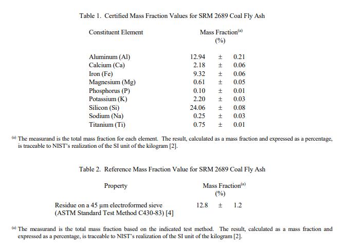 產(chǎn)品名稱:SRM 2689 - 粉煤灰