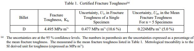 NIST 認證值是 NIST 對其準確性有最高置信度的值,因為所有已知或可疑的偏差來源都已被調查或考慮 [3]。可追溯性是國際單位制 (SI) 焦耳(吸收的能量)和千牛頓(力)單位。為 SRM 2112 樣品確定的認證值在表 1 和表 2 中給出。